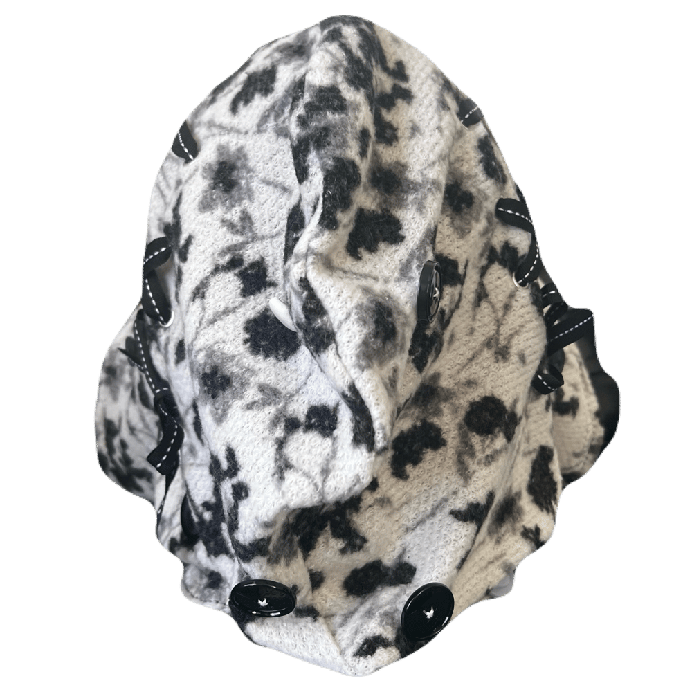 decorated with various buttons and charms -corset detail on the sides with grommets and ribbon