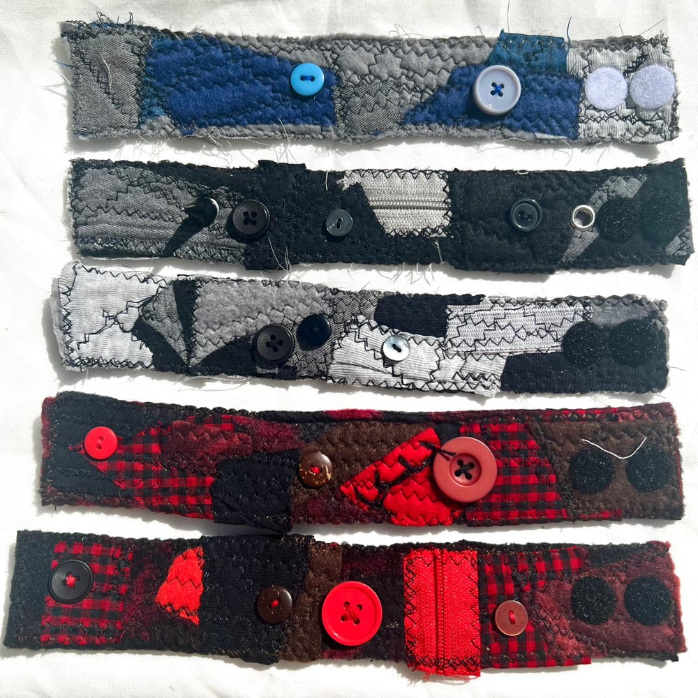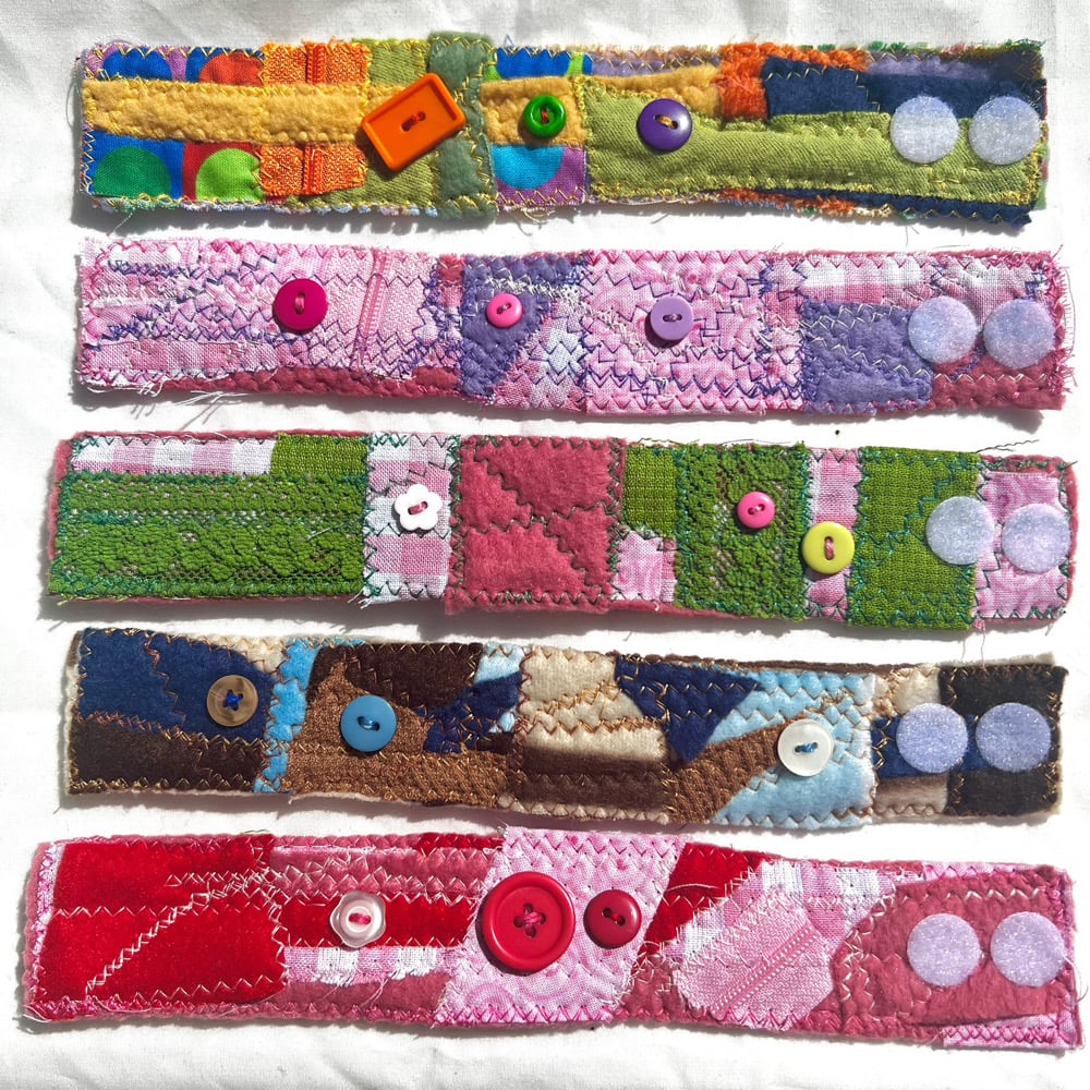 1:1 cuff bracelets made from fabric scraps #recycle all sewn with 2-5 buttons