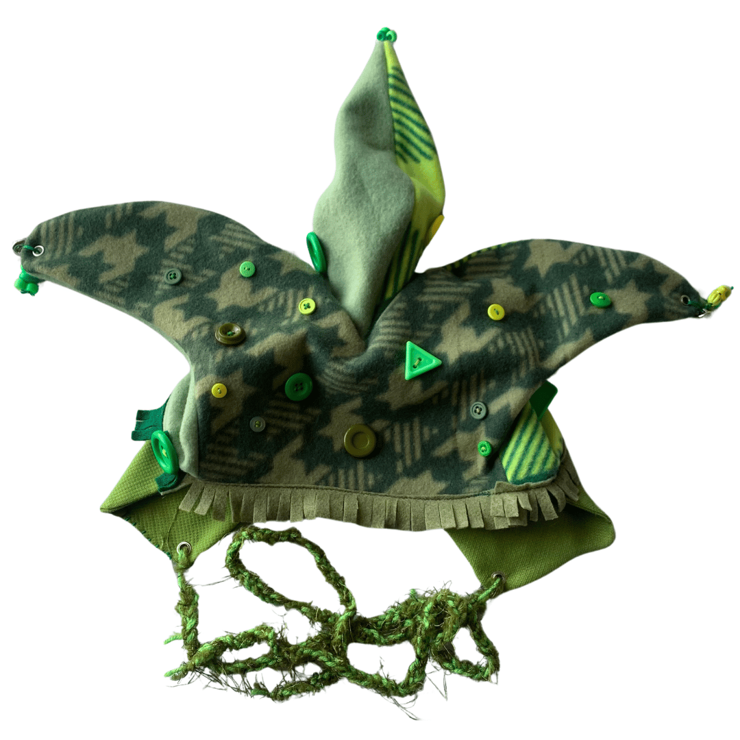 Made with fleece fabrics and cotton as well as acrylic yarn