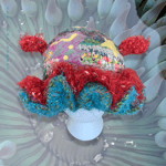 inspired by sea slugs, a ruffled bonnet, decorated with wool felted details & smaller crocheted details