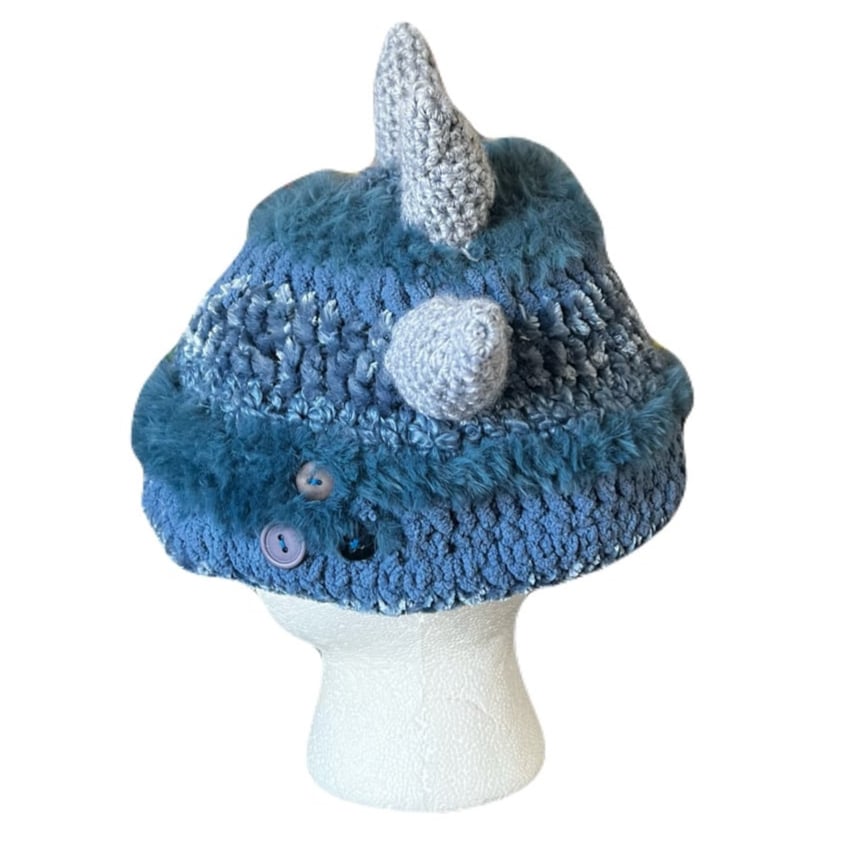 Decorated with crocheted spikes and minimal buttons
